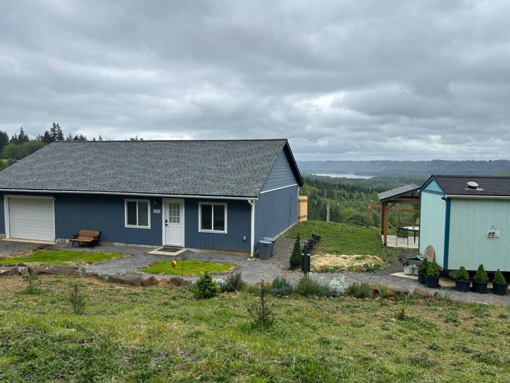 This one-bedroom one-bath “tiny house” is a perfect space for one person or a couple. It is conveniently located right next to the cottage but separate enough for privacy.